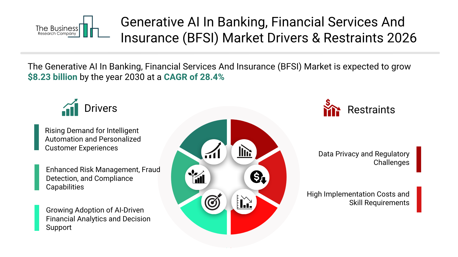 LONDON, GREATER LONDON, UNITED KINGDOM, April 23, 2026 /EINPresswire.com/ -- "Generative AI In Banking, Financial Services And Insurance (BFSI) market to surpass $8 billion in 2030. In comparison, the Generative Artificial Intelligence (AI) In Lending market, which is considered as its parent market, is expected to be approximately $10 billion by 2030, with Generative AI In Banking, Financial Services And Insurance (BFSI) to represent around 83% of the parent market. Within the broader Financial Services industry, which is expected to be $51,116 billion by 2030, the Generative AI In Banking, Financial Services And Insurance (BFSI) market is estimated to account for nearly 0.02% of the total market value.